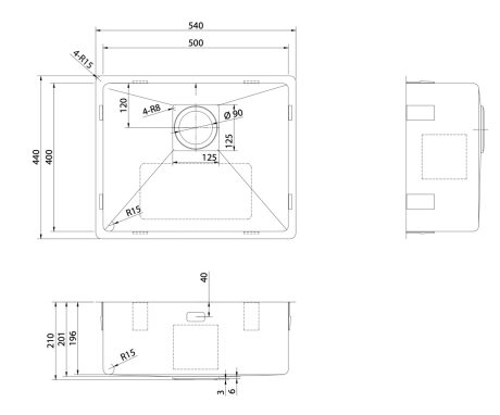 DeRicci HMSQ5040R15 Lavello serie Professional - Acciaio inox 54x44x21cm