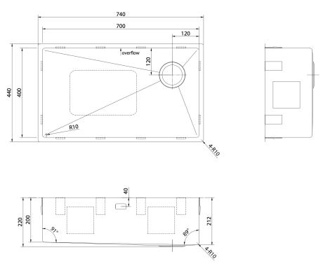 Lavello DeRicci HMS7040R10SS Serie Professional - Acciaio inox 74x44x22