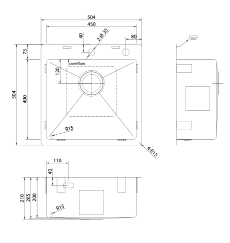 DeRicci HMS4540R15SS Lavello da cucina serie Professional - Acciaio inox 50,4×50,4×21