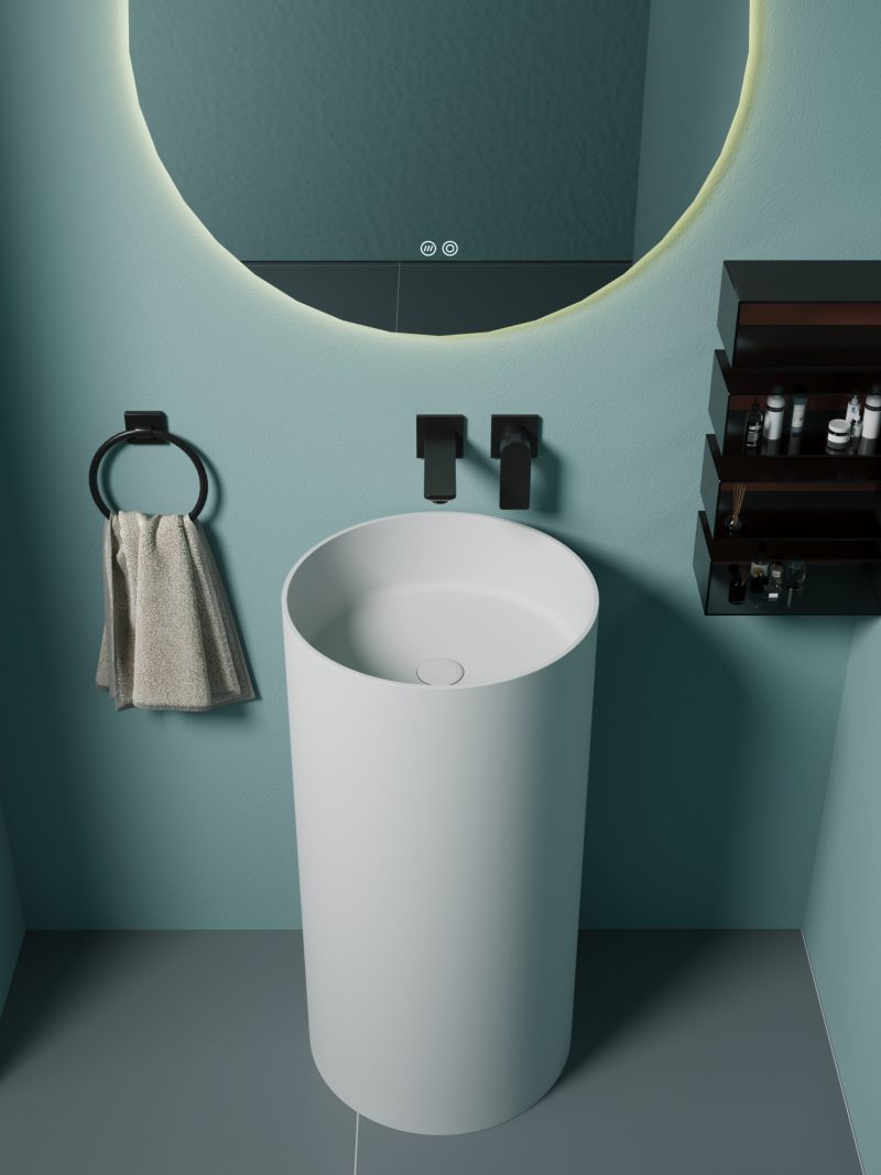 Create una dichiarazione di pura eleganza con il lavabo freestanding DeRicci DE-6620. Questo lavabo a pavimento è caratterizzato da un profilo cilindrico impeccabile, che si erge con grazia dal pavimento per offrire una vasca profonda e circolare.