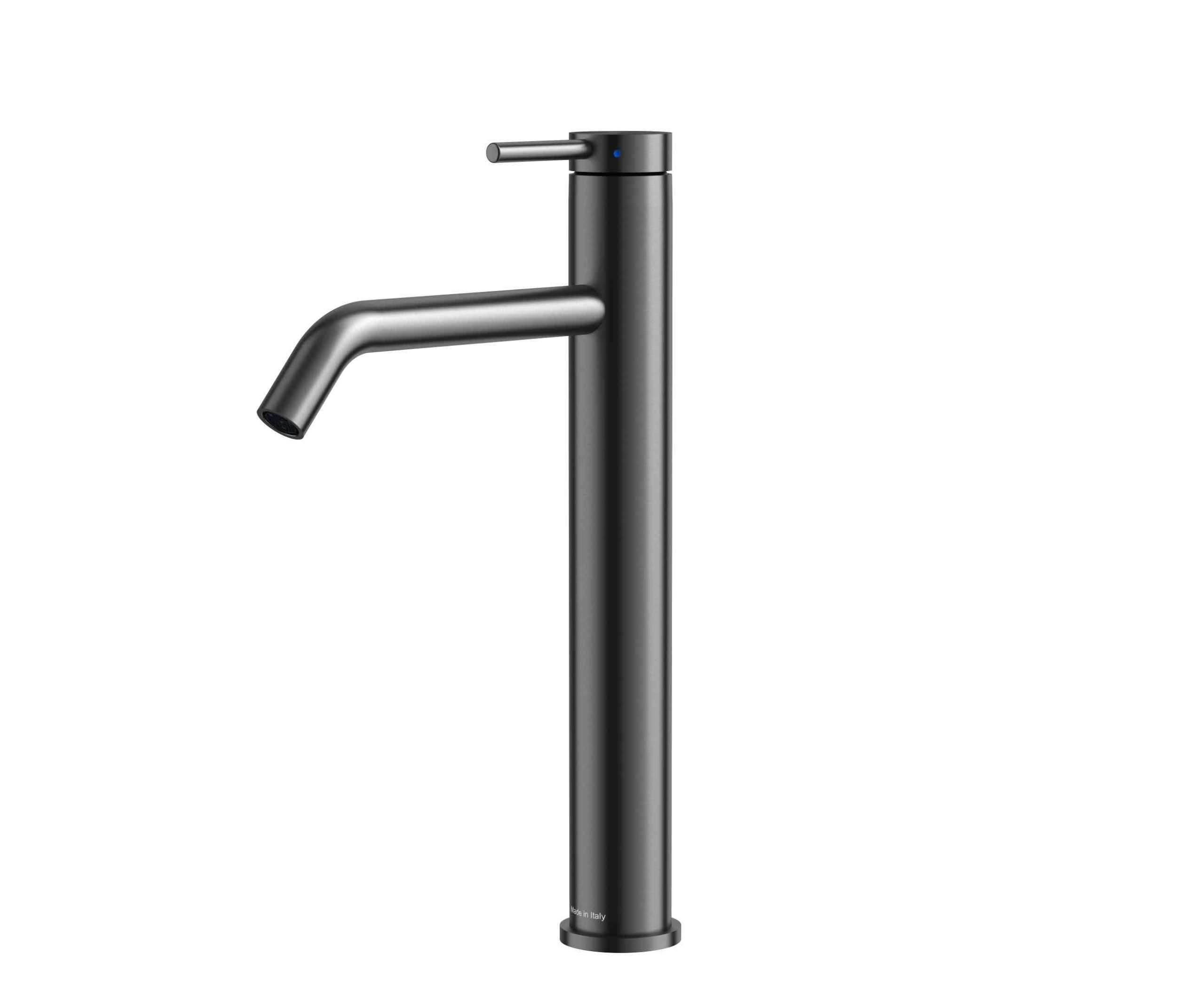 Create un'atmosfera sofisticata e lunatica nel vostro bagno con il modello DeRicci DE-1042H in nero spazzolato. Questo rubinetto per vasi presenta un'esclusiva finitura metallica scura con una sottile texture spazzolata, che offre un raffinato tocco industriale meno duro del nero opaco e più distintivo del cromo standard.