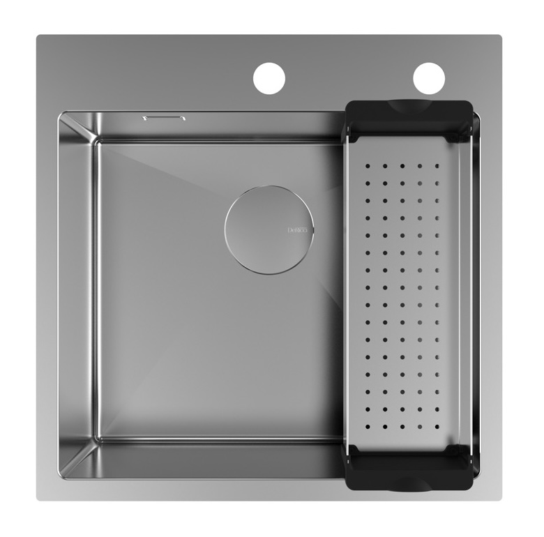 L'ingombro quadrato perfettamente simmetrico di 51x51 cm offre una soluzione equilibrata e versatile per isole o piani d'appoggio principali. Nonostante le dimensioni essenziali, il generoso bacino extra-profondo di 21 cm offre un volume significativo, in grado di accogliere facilmente brocche alte, pentole di grandi dimensioni e pile di piatti, mantenendo gli schizzi confinati all'interno della vasca.