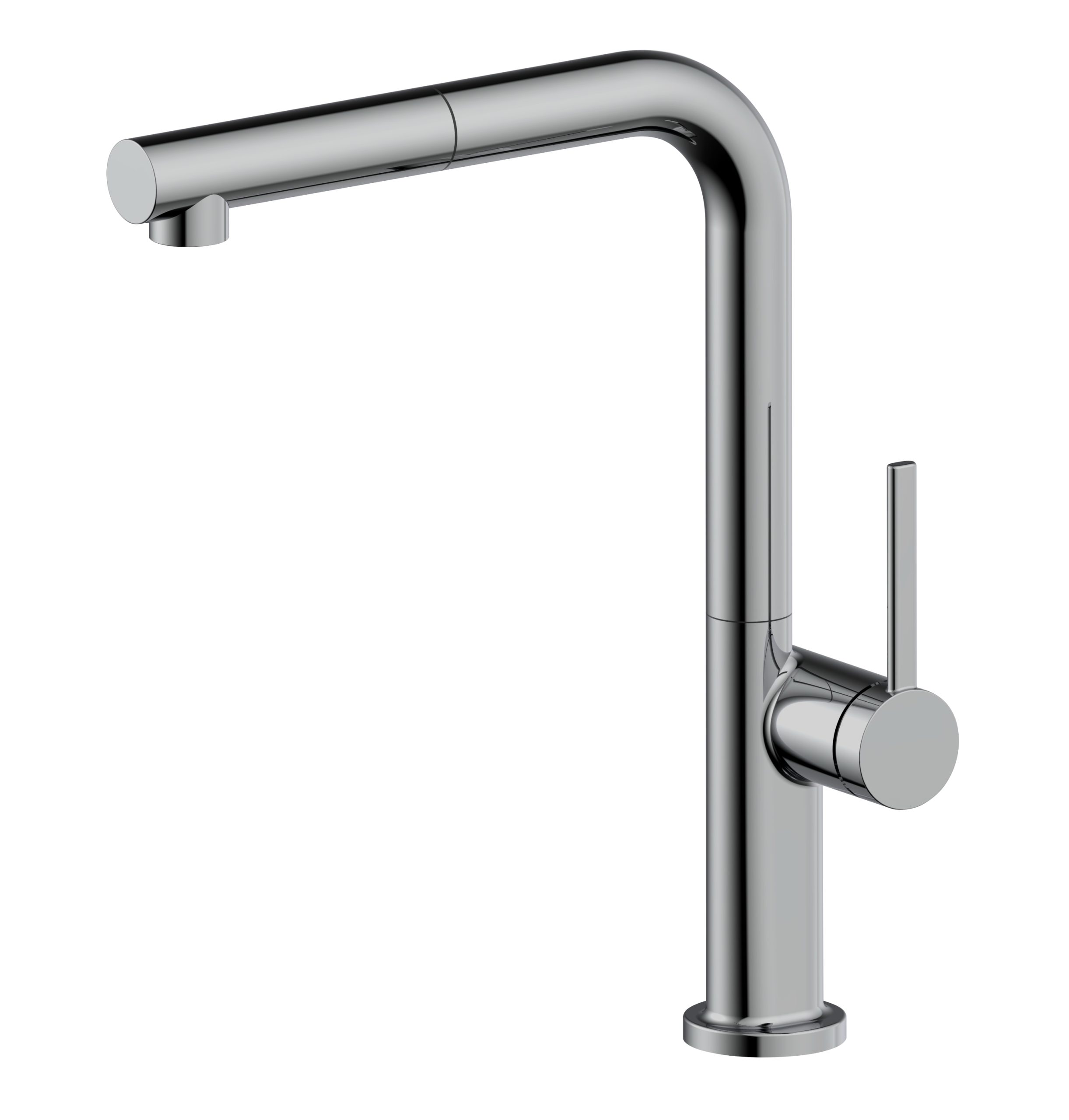 Questo modello è dotato di un beccuccio orizzontale ad alta clearance, che offre ampio spazio per la manovrabilità nel lavello. Il miscelatore estraibile a scomparsa offre un sistema di pesata a bilanciamento di precisione, che garantisce una fuoriuscita fluida per un risciacquo mirato e un rientro con un clic soddisfacente e preciso. Ogni curva è lucidata a mano per garantire un riflesso impeccabile che incarna l'impegno di DeRicci per l'eccellenza “Mastered in Milan”.