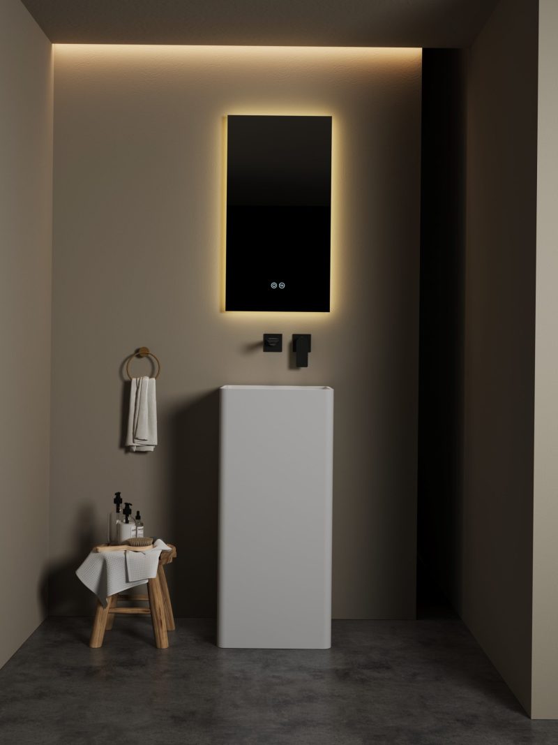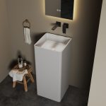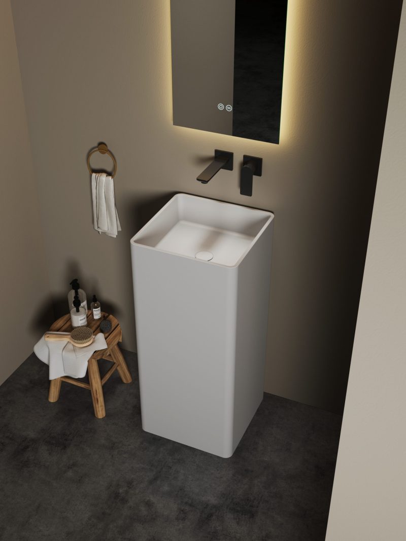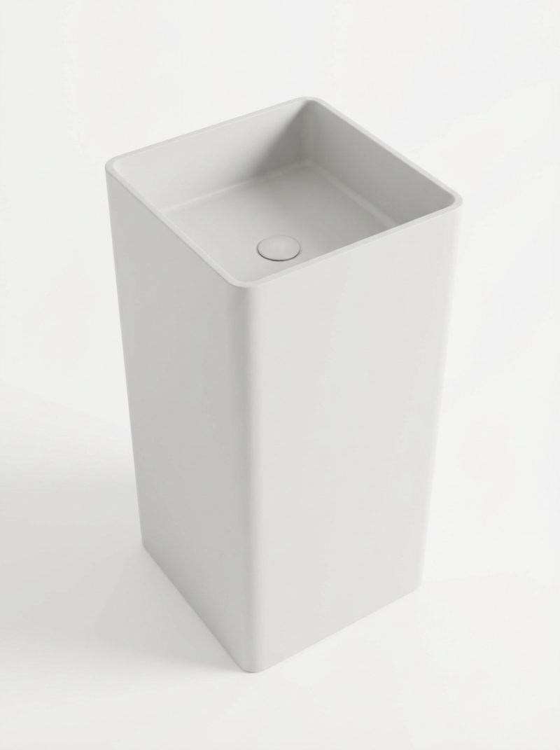 Definite il vostro bagno con l'eleganza scultorea del lavabo freestanding DE-6601 di DeRicci. Questo lavabo da terra è caratterizzato da un design quadrato contemporaneo con angoli smussati, che crea una silhouette liscia e a colonna che si erge dal pavimento.