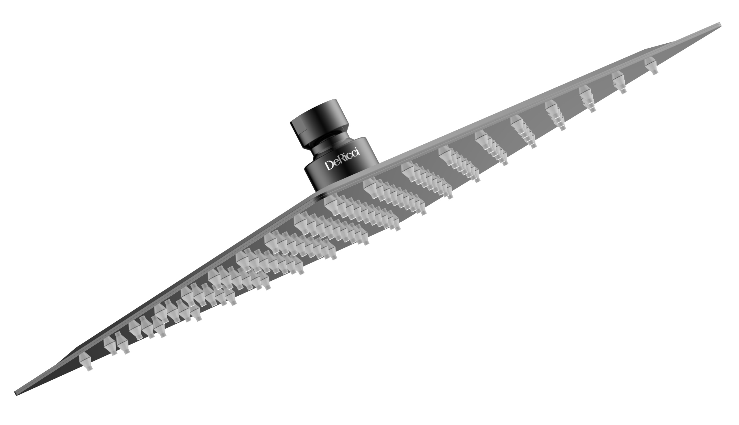 Fai una dichiarazione audace con il soffione doccia a pioggia quadrato ultra-sottile DeRicci in nero lucido. Questa finitura “cromo nero” riflette magnificamente la luce, offrendo un'alternativa unica e lussuosa alle finiture opache standard.
