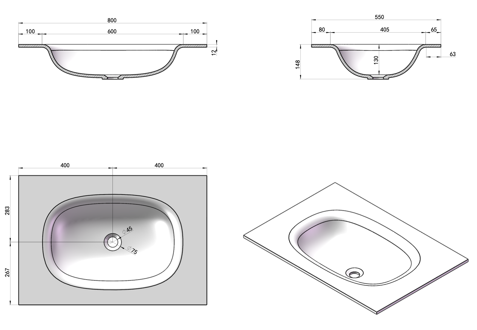 Size: 800mm (Width) x 460mm (Depth).