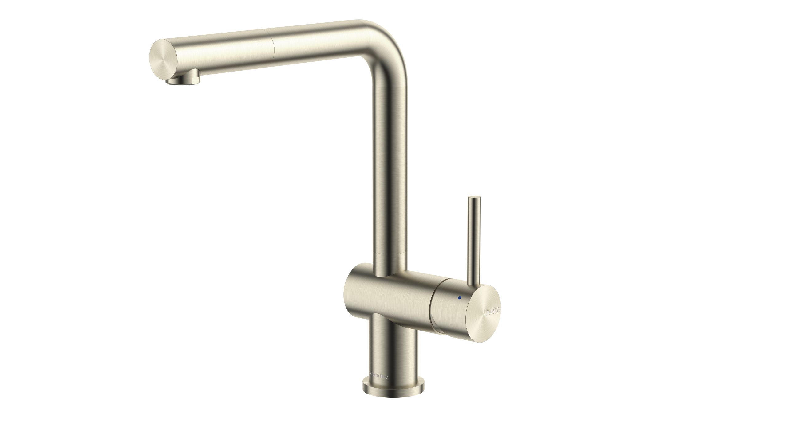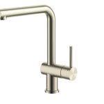 Enhance your kitchen’s style and functionality with the DeRicci DE-2154 Brushed Brass Kitchen Mixer. This premium tap features a modern L-shaped swivel spout, providing excellent clearance for filling large pots and washing bulky pans.