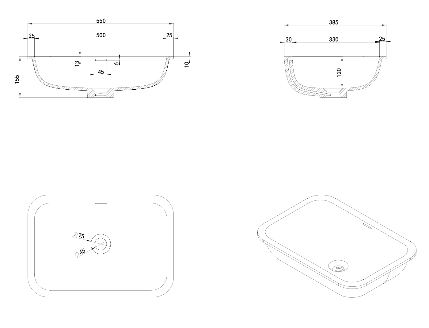 Achieve a flawless, minimalist bathroom finish with the DeRicci DE-9609C Undermount Basin. This spacious rectangular sink is designed for seamless integration beneath your vanity top, creating a smooth surface that is both hygienic and easy to wipe clean.