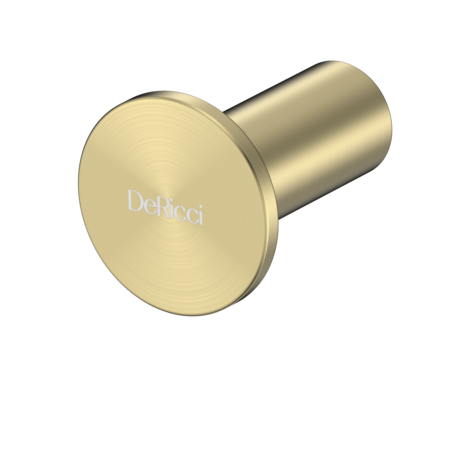 Add a touch of minimalist luxury to your bathroom with the DeRicci Brushed Brass Robe Hook. This compact accessory features a sleek cylindrical design with a circular faceplate, finished in a warm, golden brushed texture.