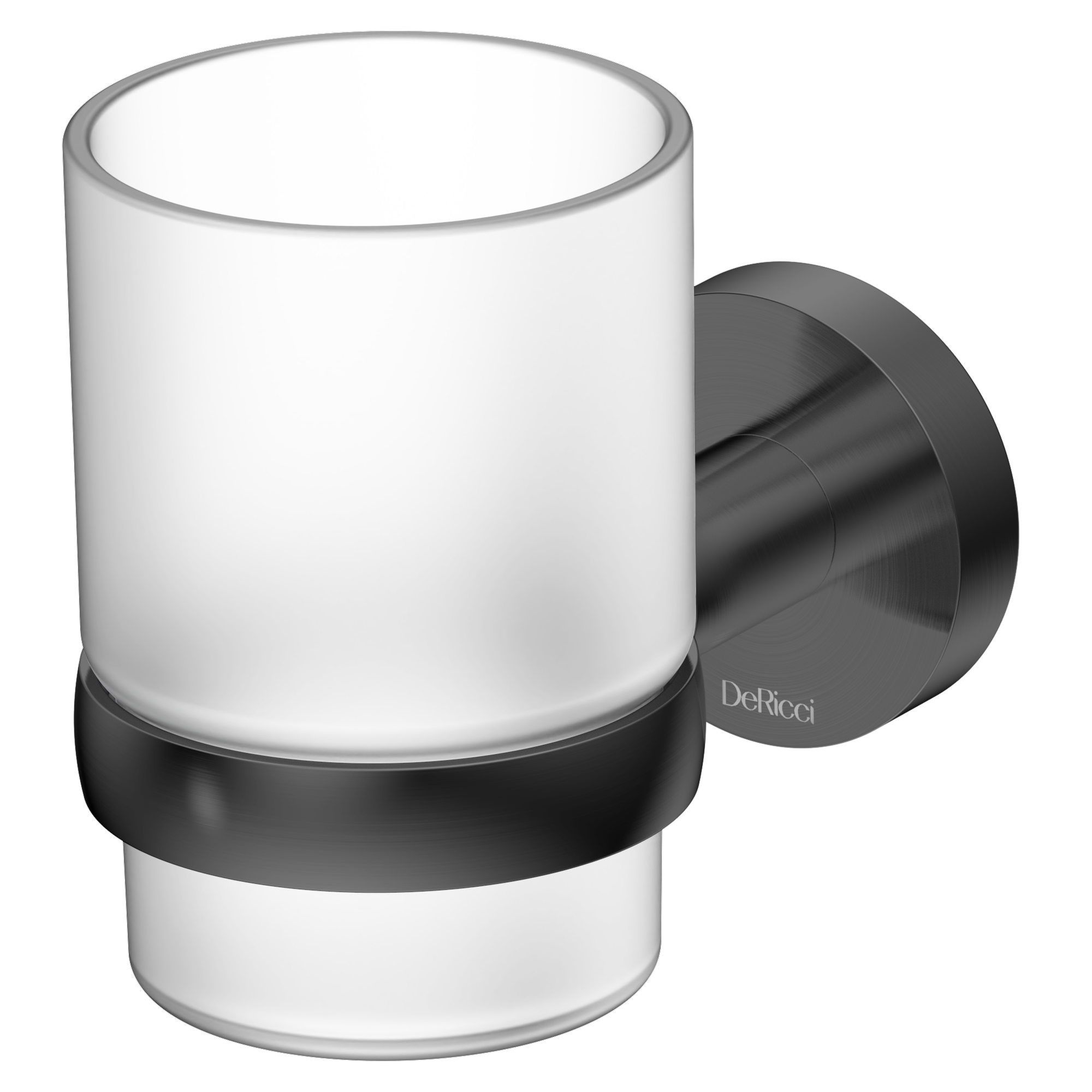 Subtle and refined, the DeRicci Dark Gunmetal Tumbler Holder features a soft anthracite finish that blends seamlessly with natural stone and concrete textures. The frosted glass cup adds a layer of softness to the modern design.